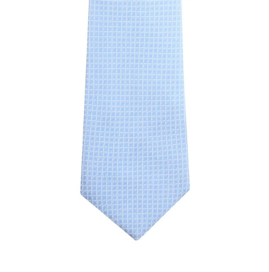 Soft Blue Microfiber Tie with Subtle Herringbone Pattern