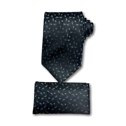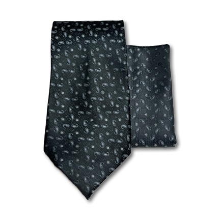 Ethmen Charcoal Subtle Paisley Tie and Pocket Square Set