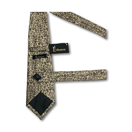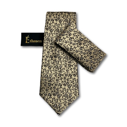This is an elegant Ethmen Tie and Pocket Square Gift Set designed for the modern gentleman, likely crafted from high-quality material such as microfiber or a silk-feel fabric. The set includes a necktie and a matching pocket square, both featuring a floral pattern with a sophisticated contrast: a dark brown color against a rich, light gold or beige background. The accessories come presented in a premium wooden or wood-look box with the ‘Ethmen’ brand logo prominently displayed on the windowed lid, making it an ideal, refined gift for business, formal events, weddings, or any special occasion. The coordinated accessories ensure a cohesive and stylish finishing touch to any suit or jacket.