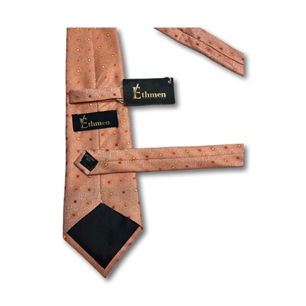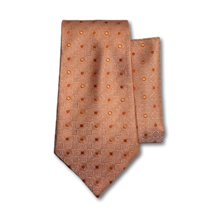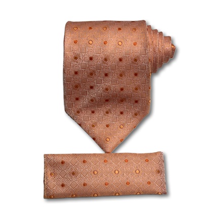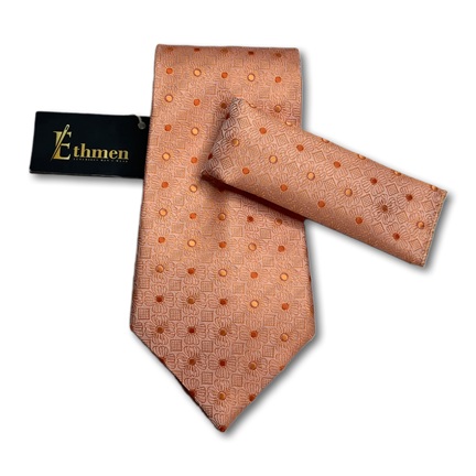 Ethmen Peach Textured Dot Tie and Pocket Square Set