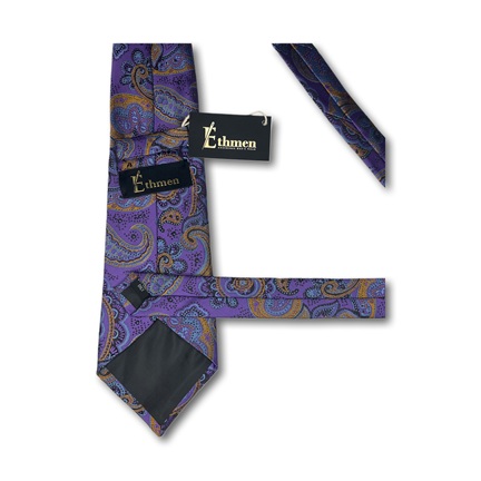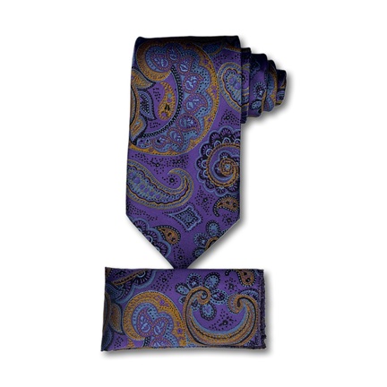Make a striking statement with this luxurious Royal Purple Paisley Tie and Pocket Square Gift Set by Ethmen. This sophisticated set features a high-quality silk-feel tie and a perfectly coordinating pocket square. Both pieces showcase an elaborate paisley pattern in rich shades of deep purple, accented with complementary tones of gold, teal, and navy blue. This vibrant combination ensures a distinguished and memorable look. The set is presented in a premium natural wood gift box with a viewing window, making it an excellent and impressive gift for weddings, anniversaries, or any formal event.
