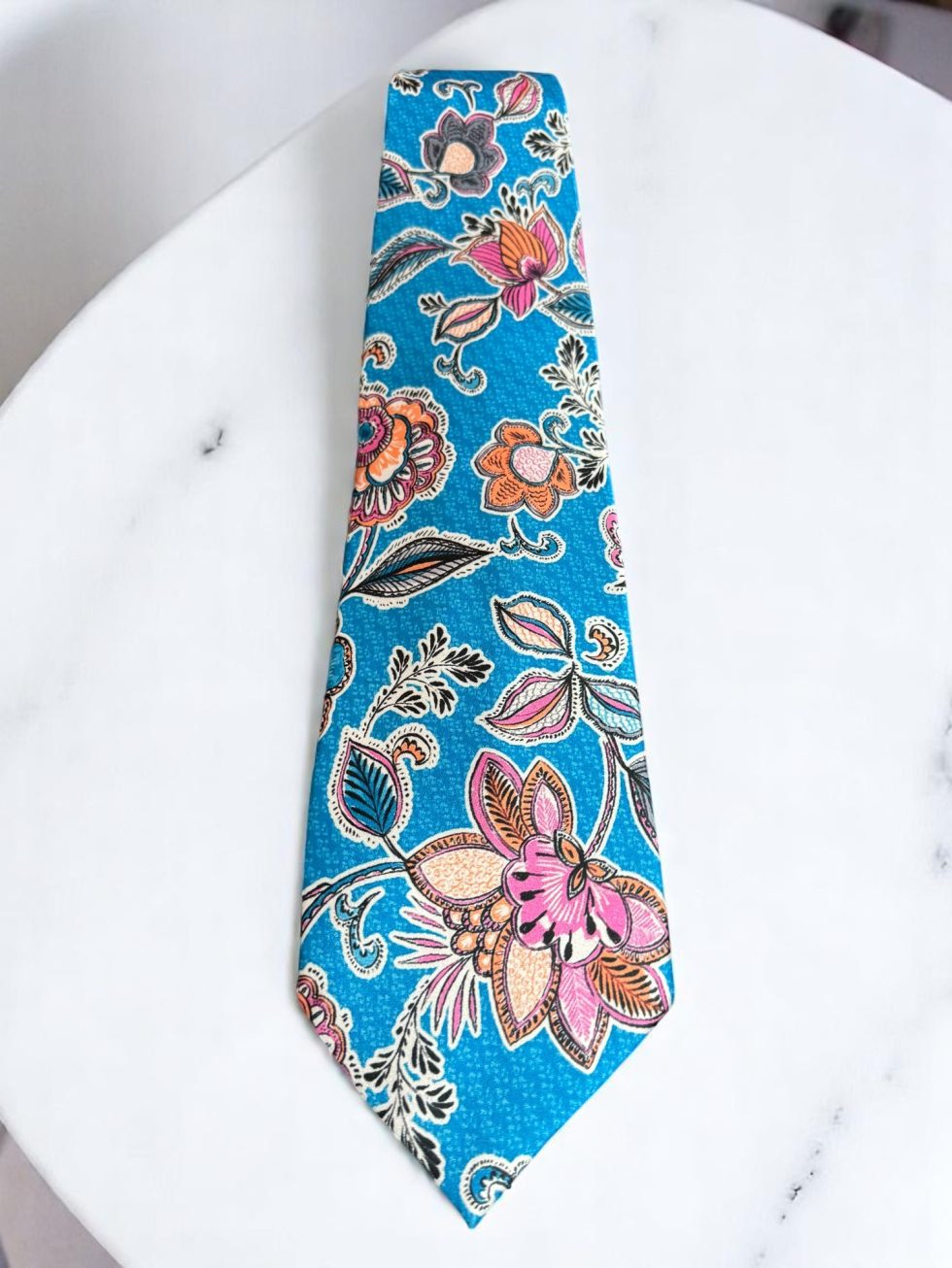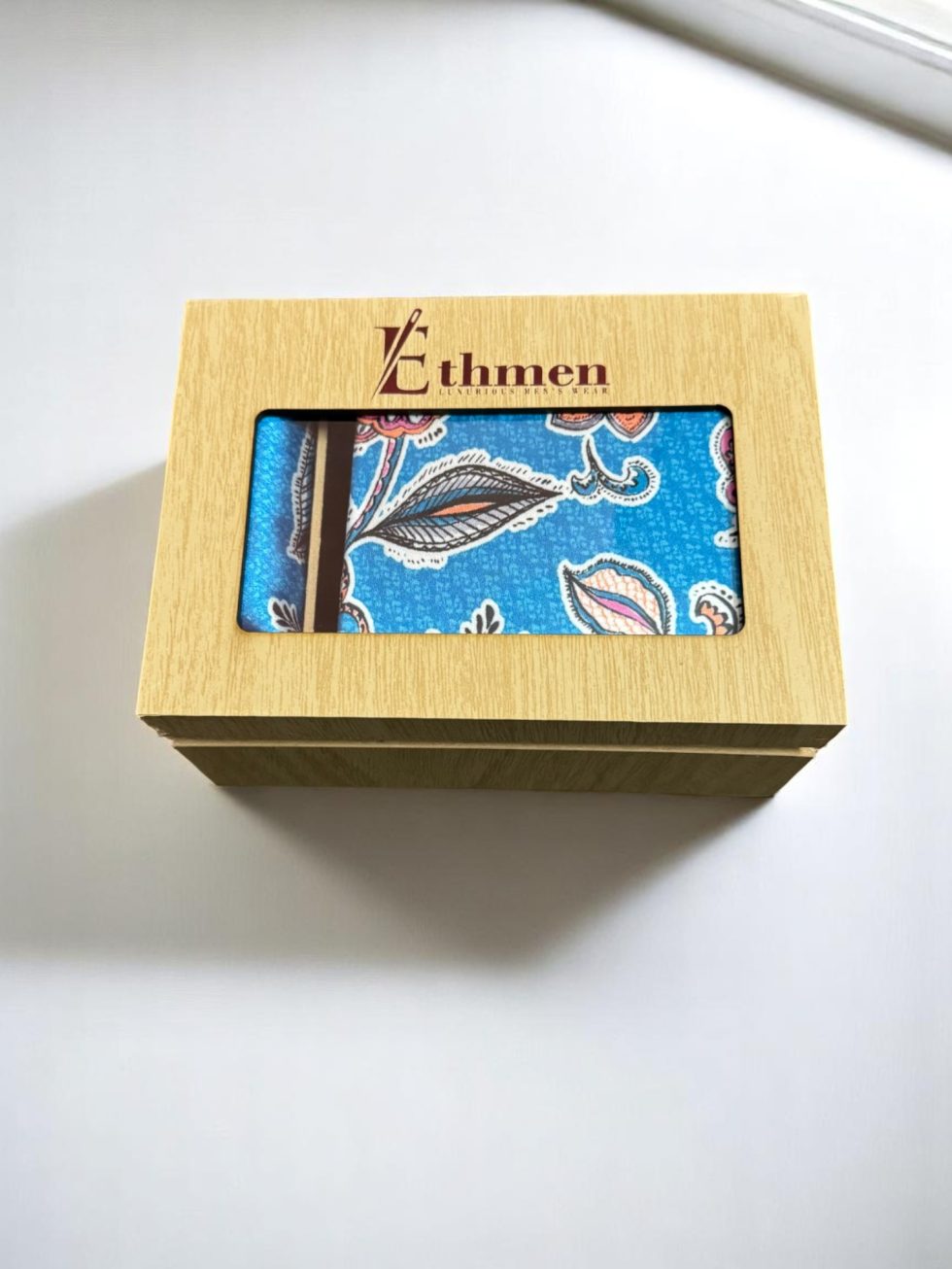 Elevate your ensemble with Ethmen’s iconic digital print tie, crafted to feel as luxurious as silk. Featuring a vibrant paisley design in rich hues of red and teal, this tie adds a bold, refined touch to any formal outfit.