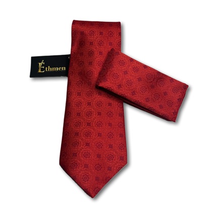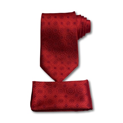 Lihmen Burgundy Geometric Pattern Silk Blend Tie and Pocket Square Gift Set